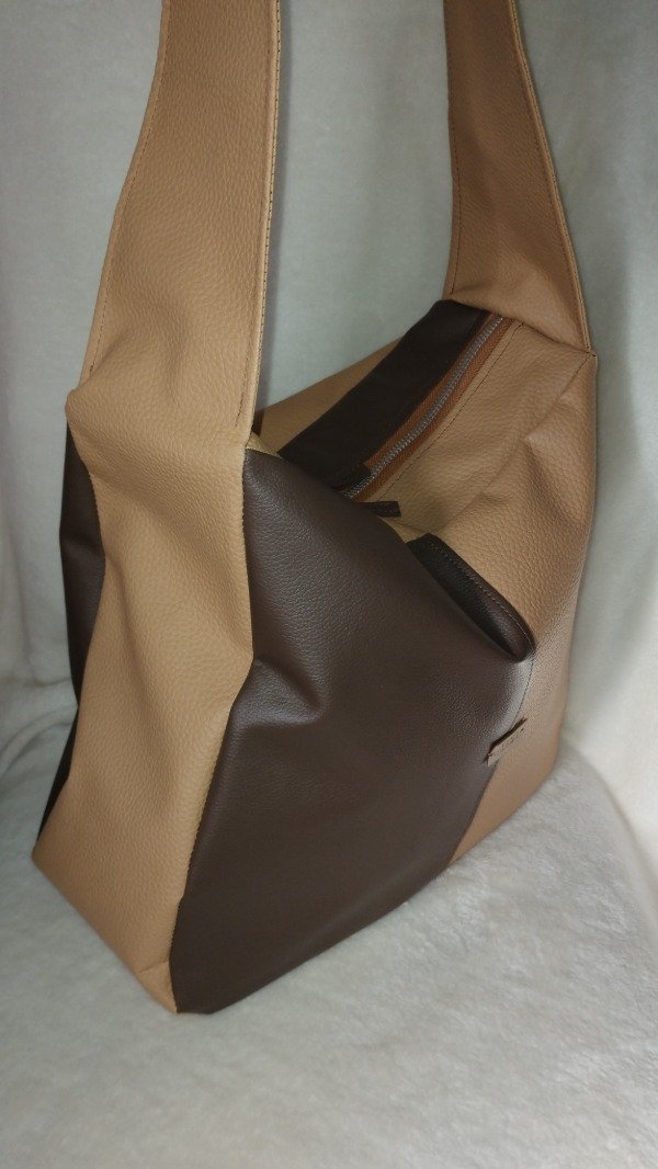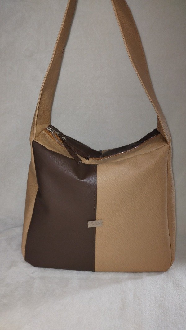 Confeccionada en cuero ecologico resistente, con cierre metalico en su boca superior; y ademas cuenta con un amplio bolsillo con cierre en su interior. Sus medidas son: 31cm de ancho, 29cm de alto y 13cm de fuelle.