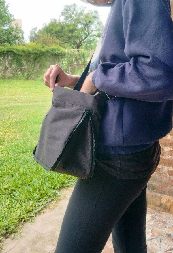 Sus medidas son: 25 cm de alto, 29cm de ancho y fuelle de 10 cm