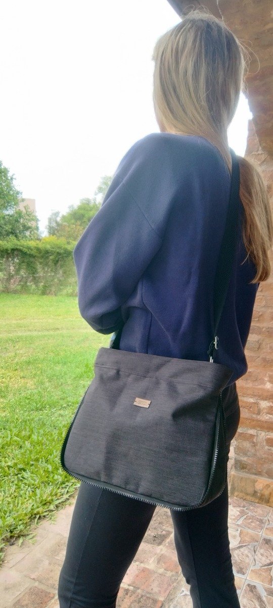 Ademas cuenta con bolsillo interno y broche iman para su cierre superior. Cuenta con correa de hombro extensible. Confeccionada en tela impermeable tanto en su exterior como interior, por lo que hace que su limpieza sea super sencilla.