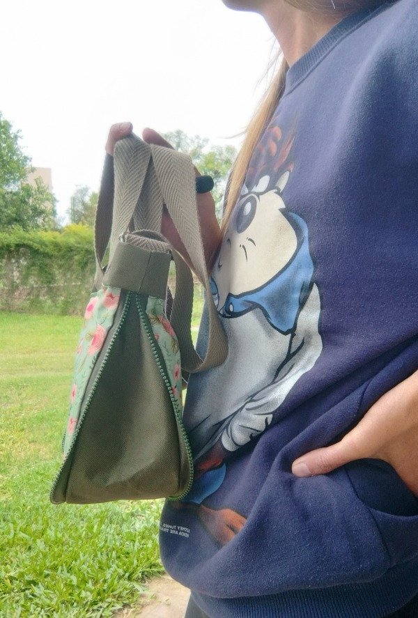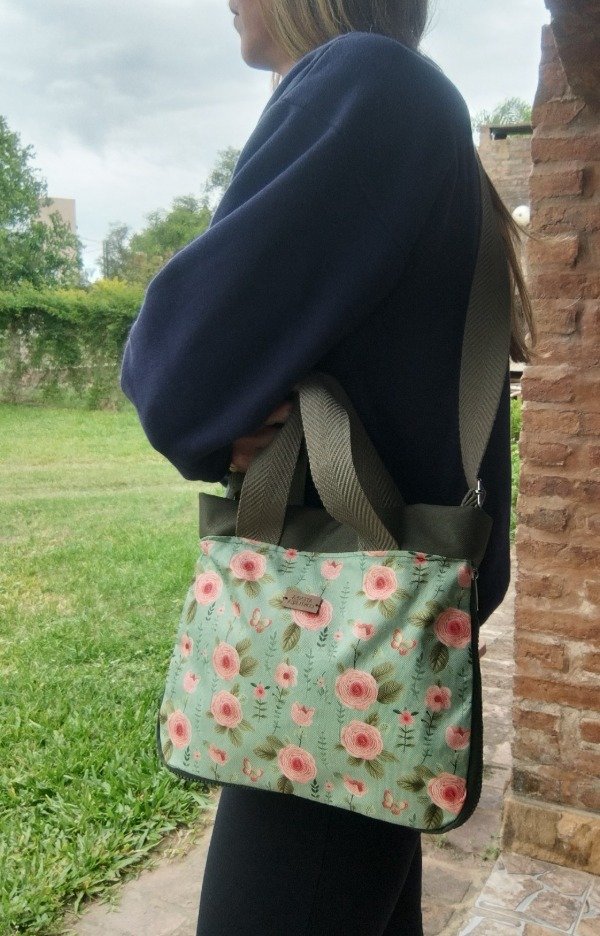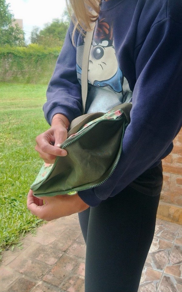Ademas cuenta con bolsillo interno y broche iman para su cierre superior. Cuenta con correa de mano y de hombro extensible. Confeccionada en tela impermeable tanto en su exterior como interior, por lo que hace que su limpieza sea super sencilla.