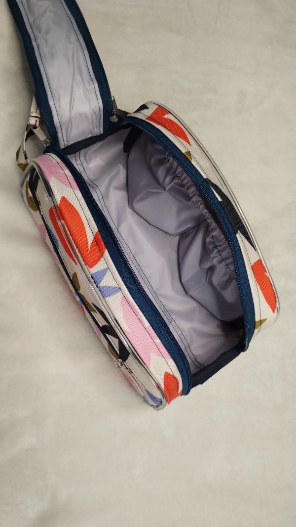 En esta versión renovada, es super amplio...con gran capacidad de guardado!. Además le sumamos un bolsillo con cierre en la parte trasera y dos bolsillos interiores con elástico.
