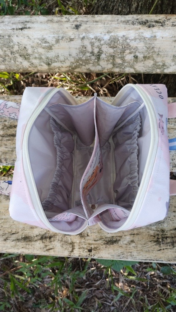 Cuenta con dos bolsillos en el interior y un divisorio interno para que todo quede bien organizado. Con este necesser podes organizar todas tus cosas y tener a la vista este bello necesser. Si te vas de viaje, podes llevar todo lo necesario en el para tener siempre a mano. Tambien lo podes usar para tener siempre a mano las cosas del bebe y tambien llenarlo con lo imprescindible para salir a pasear.
