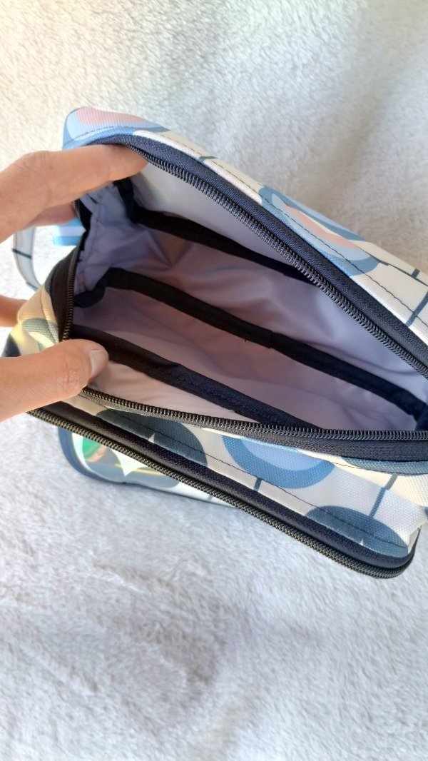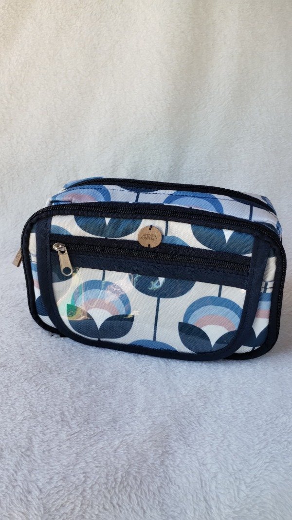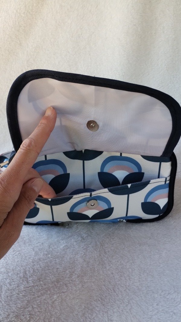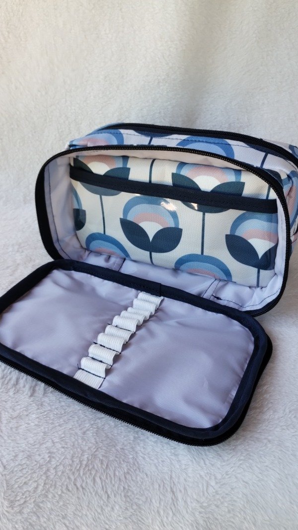 Cuenta con bolsillo de nylon transparente y cierre en el frente; detrás de este este otro bolsillo con broche imán lo que permite estimular el encastre. Además un bolsillo con cierre, en donde en su interior tiene compartimento con elástico para útiles y otro bolsillo de nylon.